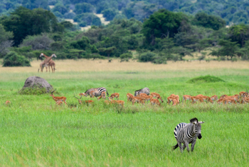Der Akagera-Nationalpark beherbergt eine große Vielfalt und Dichte an Wildtieren. Hier leben Leoparden und Löwen, weiße Nashörner, östliche Spitzmaulnashörner, Büffel, Massai-Giraffen, Zebras und interessante Antilopenarten wie Topis, Pferdeantilopen, die scheuen Sitatungas und Oribis sowie 520 Vogelarten.