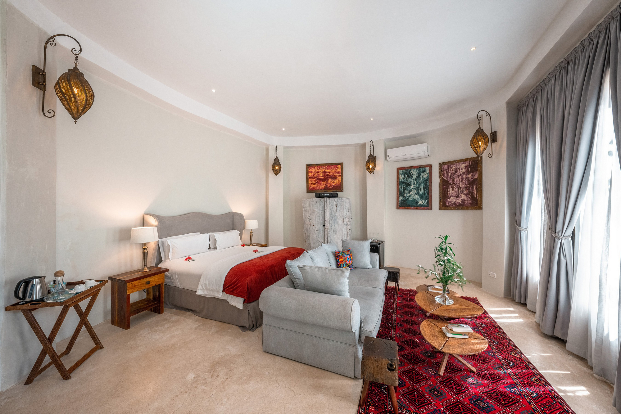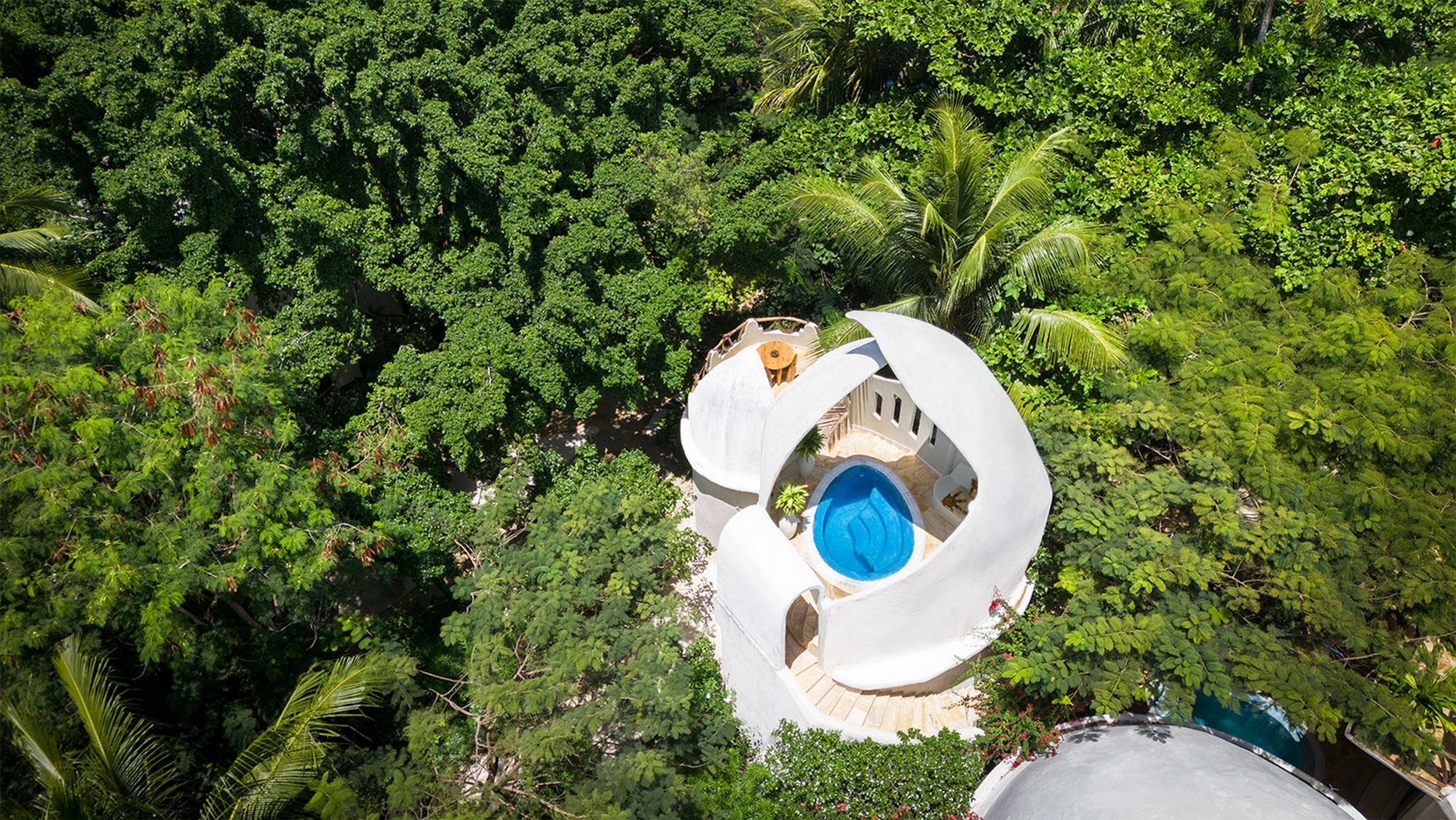 Die neun Villen sind individuell gestaltet und verfügen jeweils über ein bis drei Schlafzimmer, großzügige Wohnbereiche mit Sofa-Lounge, Essbereich, voll ausgestattete Küche oder Kitchenette, Klimaanlage, Ventilatoren, Moskitonetze, Safe, Minibar sowie private Terrassen mit eigenem Pool. Die Badezimmer sind en suite ausgestattet mit WC, Dusche und/oder freistehender Badewanne, Doppelwaschbecken, fließendem Warm- und Kaltwasser. Große Glasfronten oder offene Raumkonzepte ermöglichen Meer- oder Gartenblick. Einige Villen liegen direkt am Strand, andere leicht erhöht im Gartenbereich.