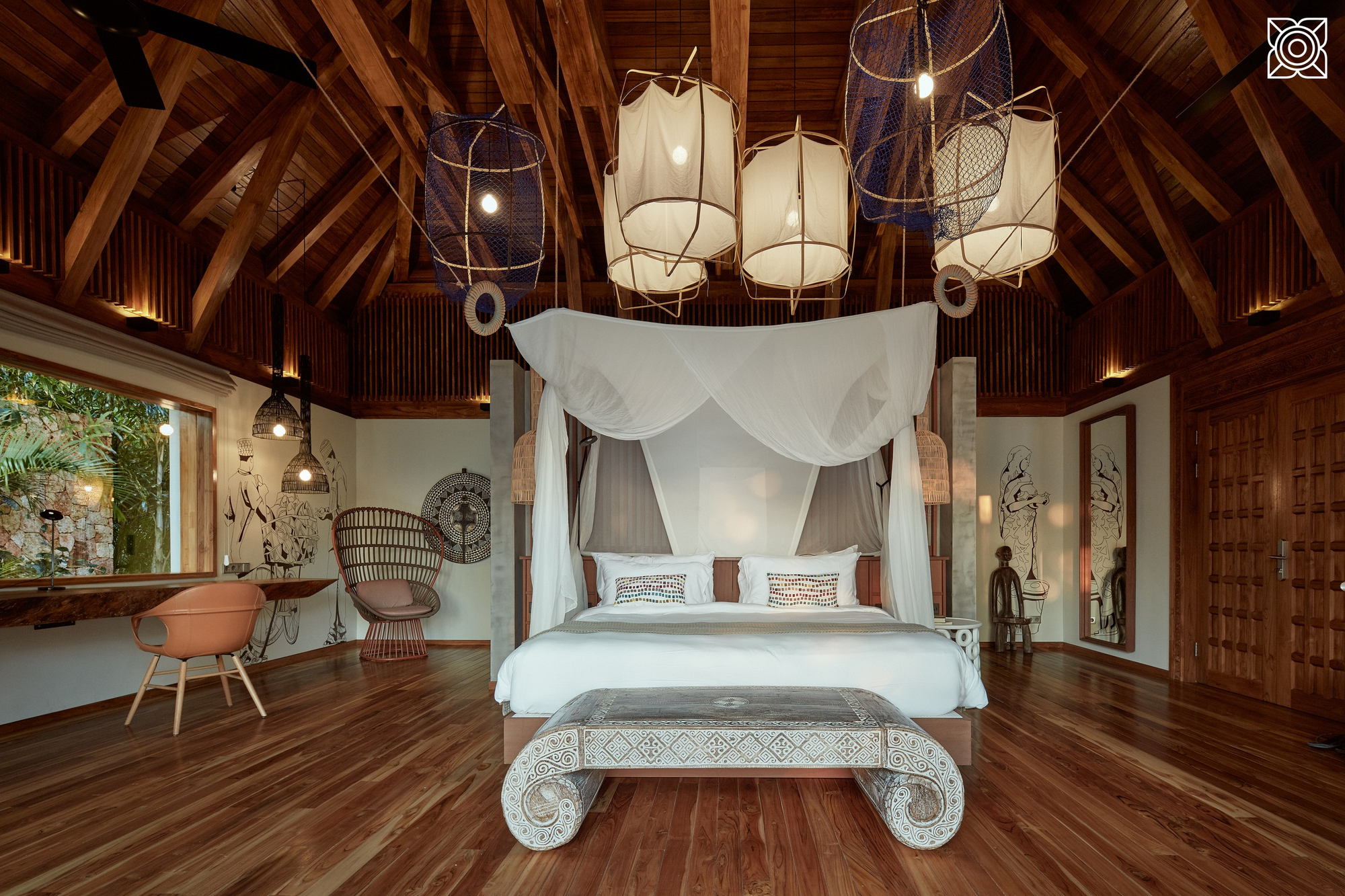 Das Resort verfügt über Bungalows, geräumige Suiten und mehrzimmerige Villen. Die meisten Einheiten bieten Meerblick oder Blick in den tropischen Garten, sind mit Klimaanlage, Safe, Minibar, Kaffeemaschine/Teestation, Bad mit Innen- und Außendusche sowie großzügigen Terrassen oder privaten Gärten ausgestattet. Villen haben zusätzlich Wohnbereiche, teilweise einen privaten Whirlpool/Jacuzzi und direkten Garten- oder Meerzugang. Alle Gebäude nutzen lokale Materialien und afrikanische Designelemente und liegen in der weitläufigen, parkähnlichen Anlage verteilt.